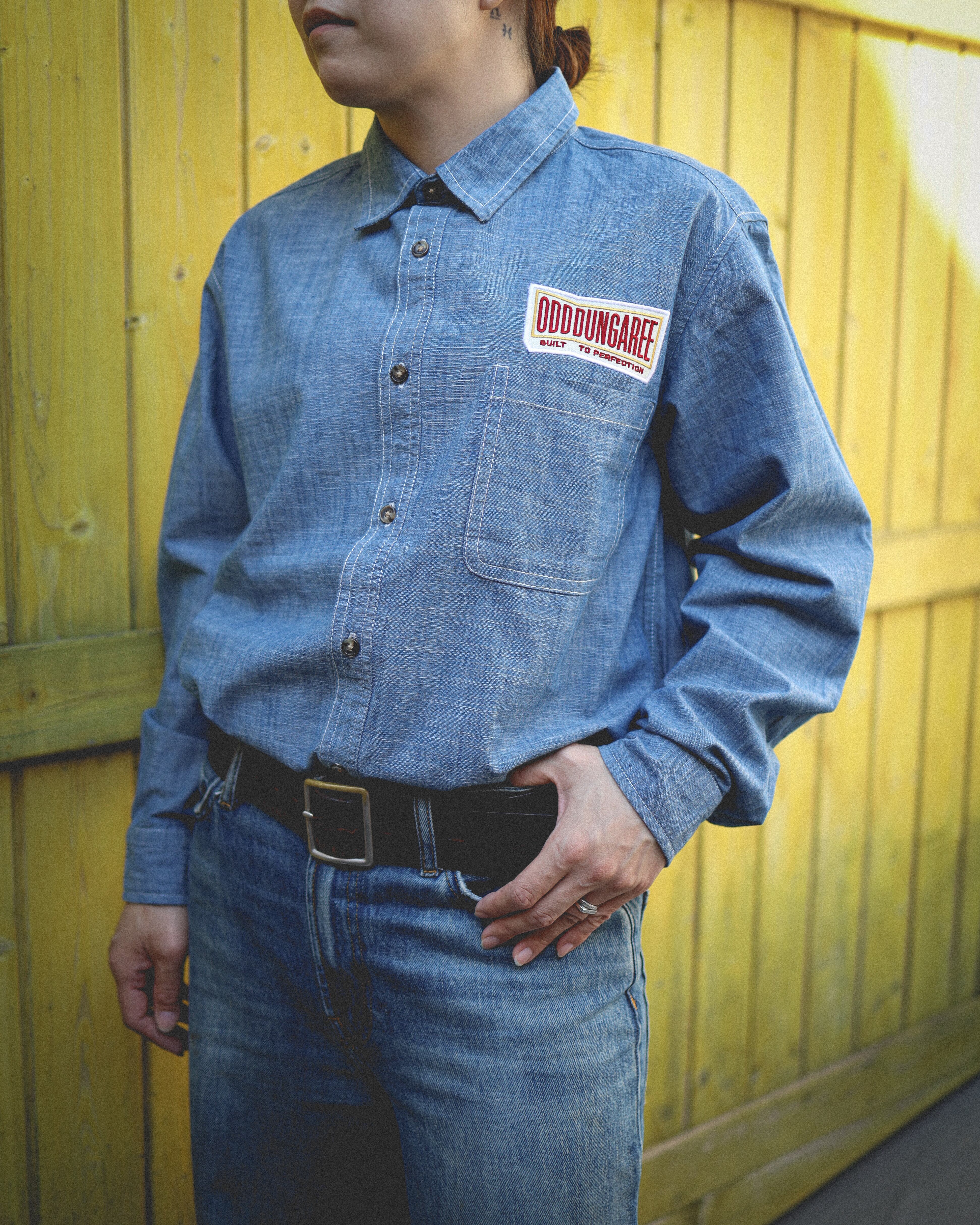 BOW PATCH L/S CHAMBRAY WORK SHIRTS -INDIGO-