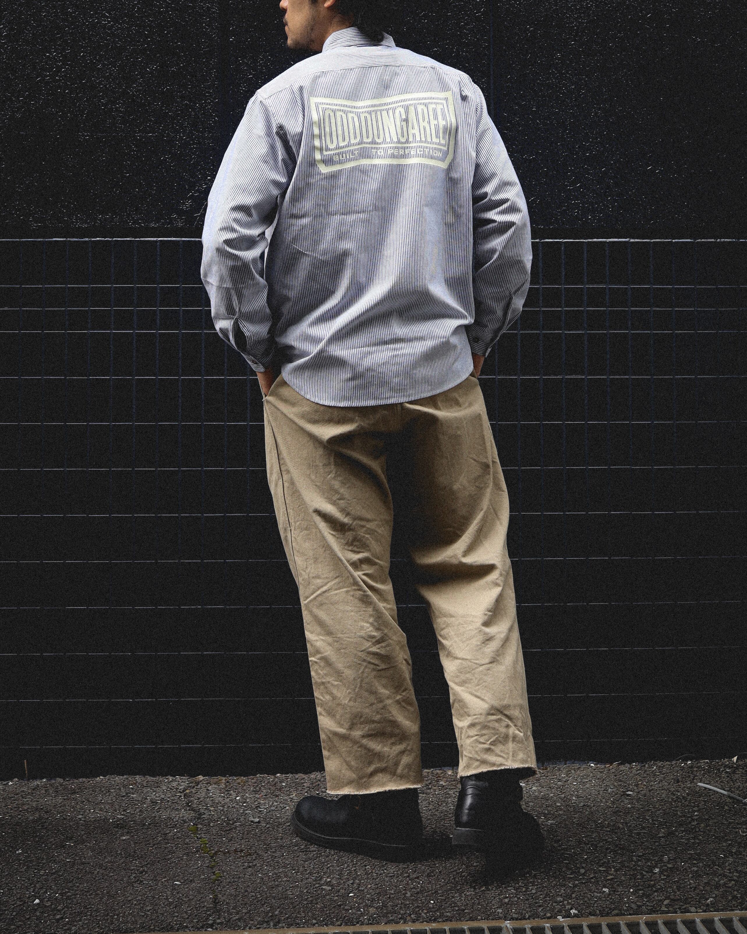 シャツとしてのコンセプトはアメリカンダイナーのユニフォームをイメージしておりますが、デザインはモーターオイルやインダストリアルなカンパニーのようなワークシャツらしい無骨さを表現。