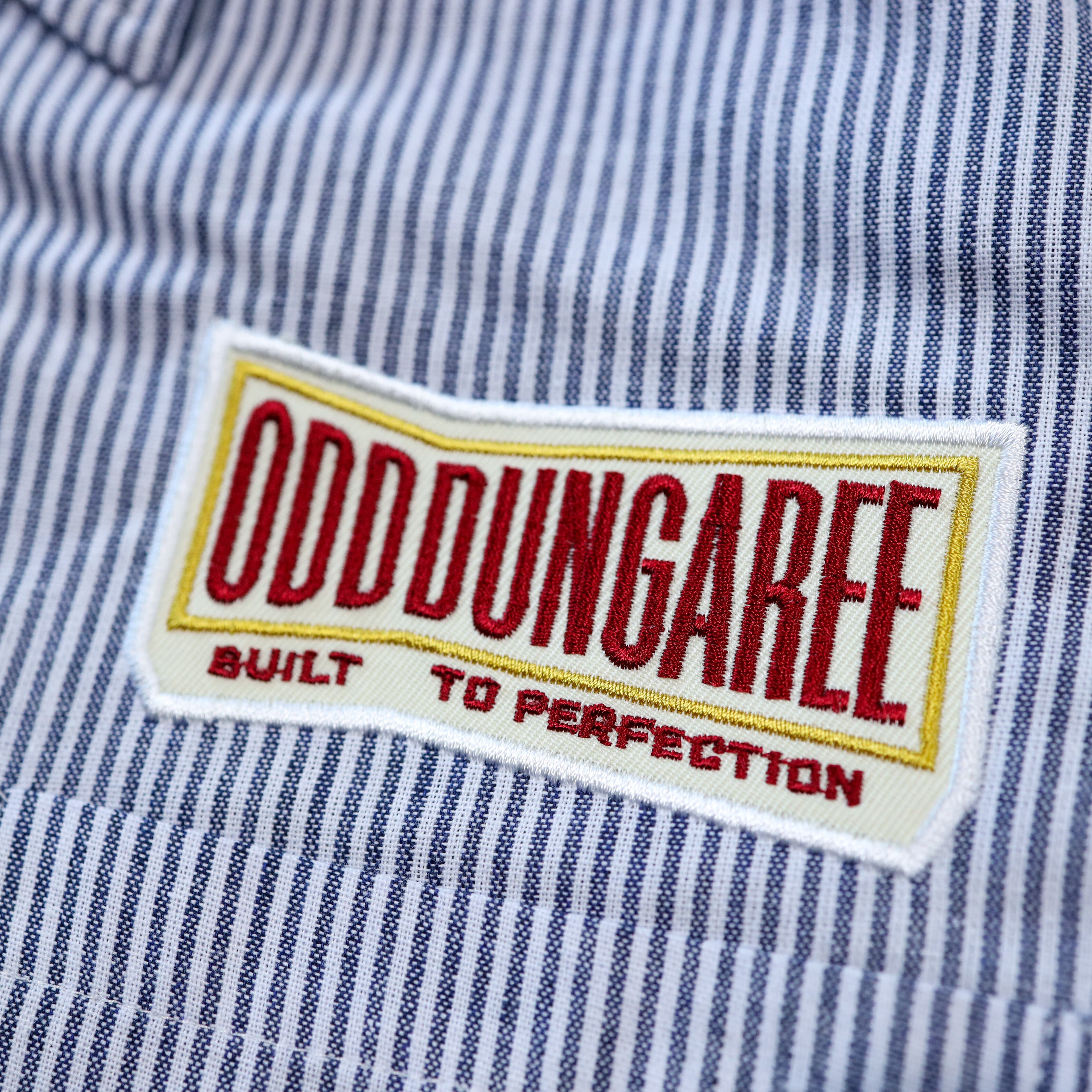 生地はコットンポリエステル混のヒッコリーストライプを使用。